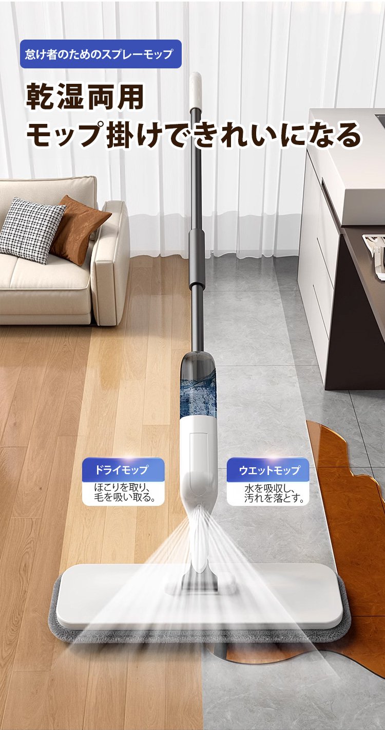 【ワンボタンでスプレー】手洗い不要スプレーモップ